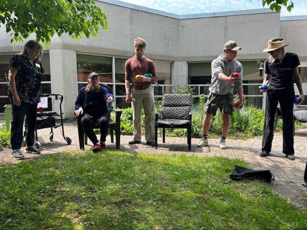 The program kicked off with a classroom visit to Highland Wood – a long-term care facility located beside the secondary school. Students received a tour of the facilities and a presentation that profiled the residents and the important considerations for planning activities. The facility’s life enrichment manager and physiotherapist also shared insights into their roles and the wide variety of career opportunities available in long-term care. The students were engaged, asked insightful questions, and discussed their ideas and feelings about the project.