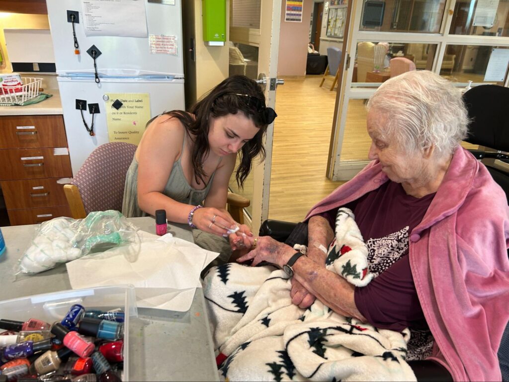 Over the next few weeks, three different groups of students, armed with games, puzzles, and crafts, walked over to Highland Wood. These extraordinary students devoted themselves to visiting residents and engaging them in activities like bocce ball, corn hole, and rock painting. Some lucky residents even received manicures!